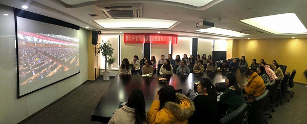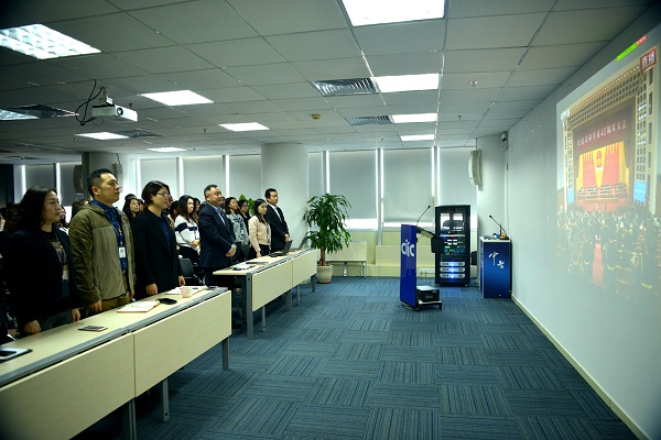 中智公司組織總部職能部門全體干部員工、女工委員、女工代表、在京分支機構(gòu)班子成員及部門負責人、職工代表等百余人在公司總部多功能廳集中收看了實況直播。同時,中智公司在全國各地的所有分支機構(gòu)積極落實組織全體員工認真收看大會直播。全體黨員干部員工身著正裝、佩戴黨徽,懷著激動和振奮的心情共同見證和回顧了改革開放40周年的偉大進程。慶祝大會國歌響起,奏響了改革開放40周年的輝煌序章,40年眾志成城,40年砥礪奮進,40年春風化雨,中國人民用雙手書寫了國家和民族發(fā)展的壯麗史詩。